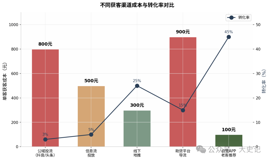 公域投流(抖音/头条) | 600-1000元 | 3-8% | 3000-5000元/户 |