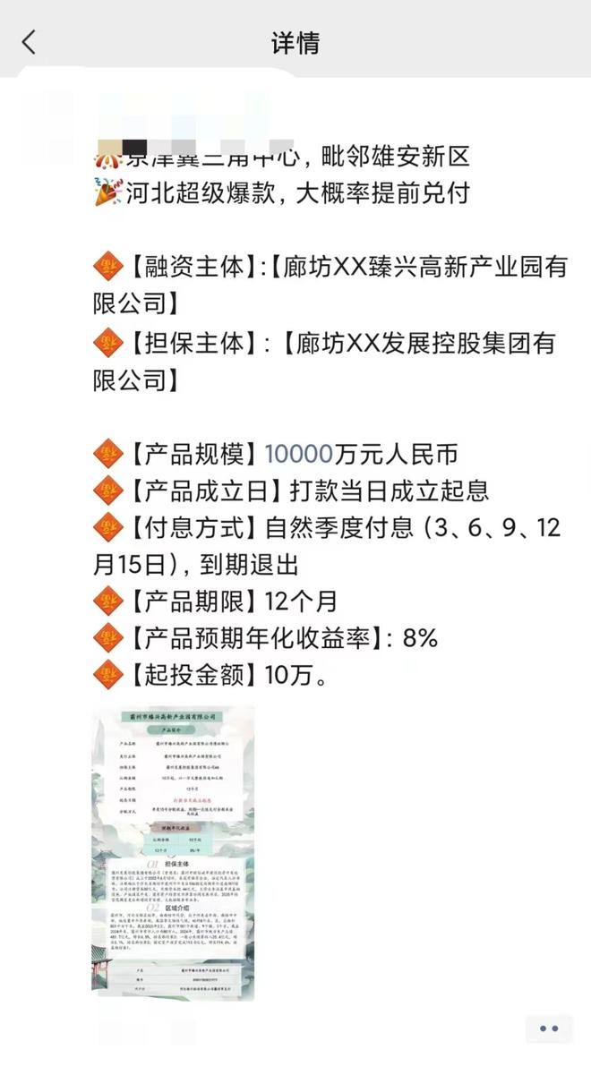 涉嫌非法集资?霸州高新“债权转让”产品:高息募资、兑付存疑
