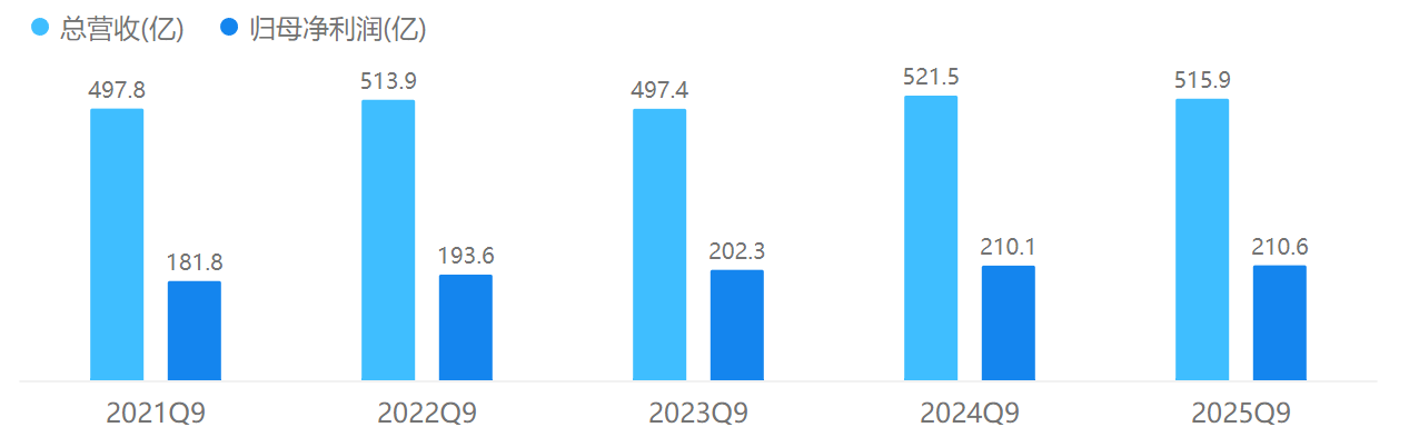 数据显示,2025年第三季度,北京银行实现营收153.70亿元,同比增长-5.71%;实现归母净利润60.11亿元,同比增长-1.85%。前三季度,实现营收515.88亿元,同比增长-1.08%;实现归母净利润210.64亿元,同比增长0.26%。