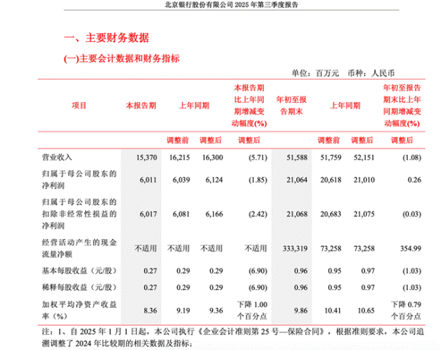 图:北京银行2025年三季报情况