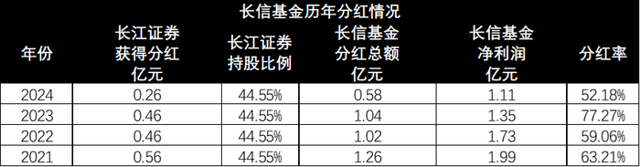 从大股东披露看,长信基金这些年虽然还是维持着不算低的分红率,但分红总额确实也已经连跌了3 年。