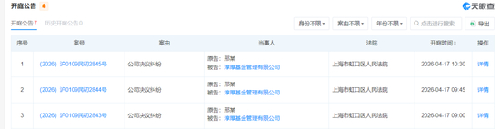 值得注意的是,这场权力交接并非完全“和平”。天眼查信息显示,邢媛与淳厚基金之间的公司决议纠纷案,将于4月17日分3次在上海市虹口区人民法院开庭,案由均为“公司决议纠纷”,或与近期的董事变更、股东会决议有关。