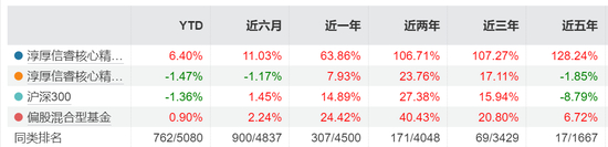 淳厚信睿核心精选C、淳厚鑫悦混合,则是权益类产品代表,成立时间分别为2020年2月、2021年10月22日,规模分别为23.1亿、1.05亿,近三年收益率分别为107.27%、51.82%。