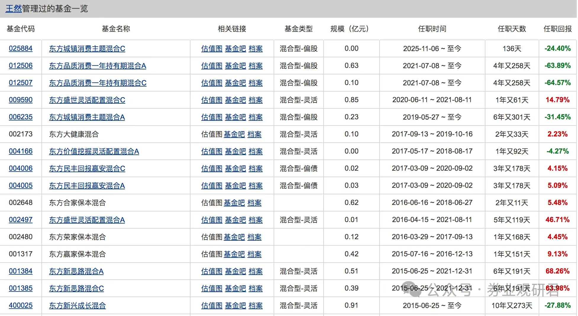 除李瑞外,权益研究部总经理王然管理的产品表现同样不佳。截至2026年3月20日,其掌舵的东方新兴成长、东方城镇消费主题A、东方品质消费一年持有A三只基金任职回报均为负值,分别为-27.88%、-31.45%、-63.89%,均大幅跑输业绩比较基准,2022年至2025年合计利润亏损3.26亿元。