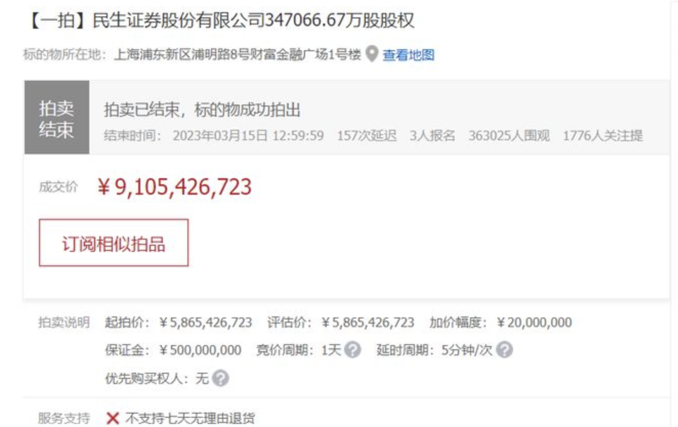 2023年3月,一场备受瞩目的民生证券股权拍卖,成为各路资本争抢的香饽饽。