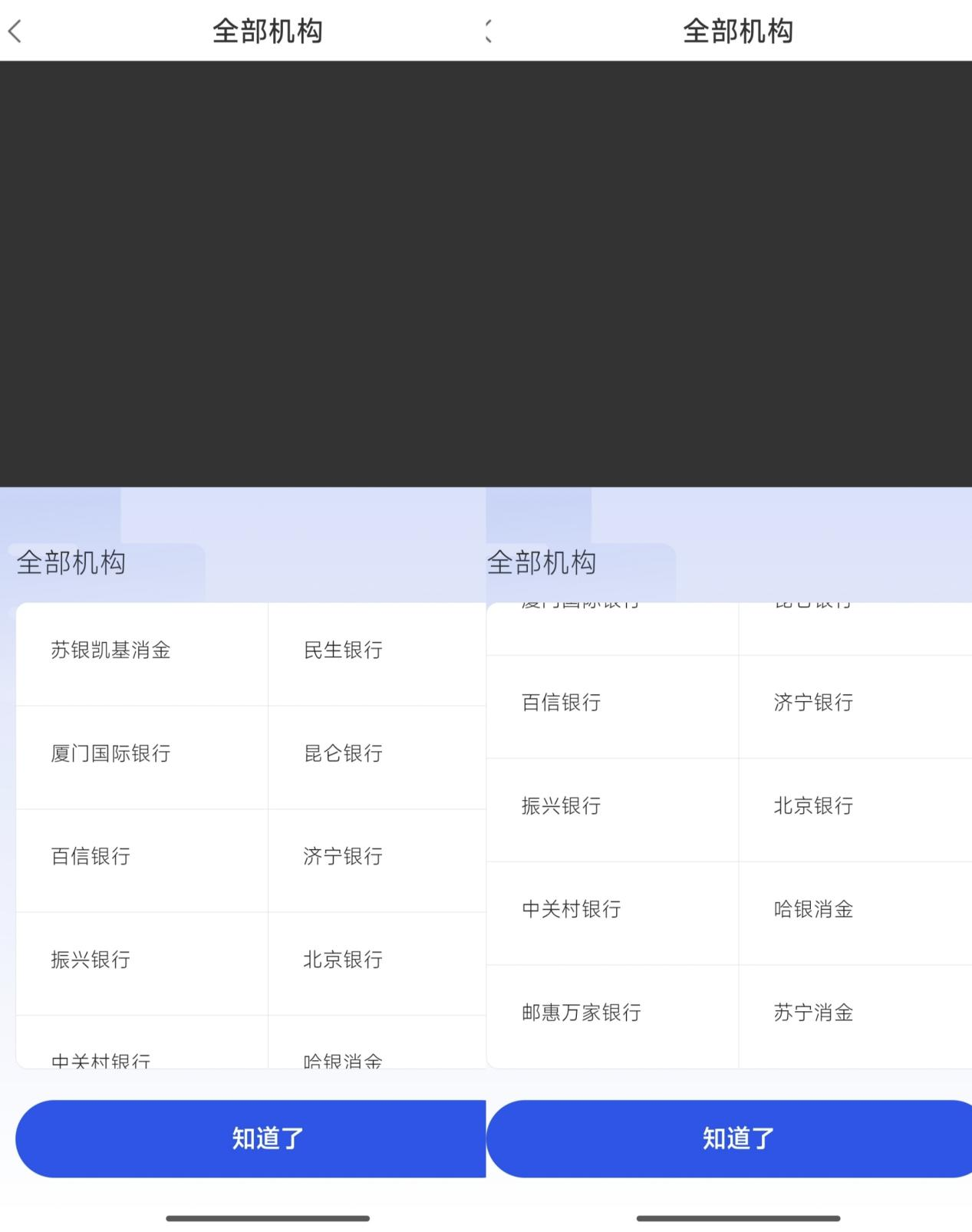 在去年7月,即助贷新规正式落地之前,盐铁财经曾实测同一入口,彼时名单是江苏银行、平安银行、浙商银行、宁波银行、哈银消金、富民银行、新韩银行、众邦银行、蓝海银行、民生银行、昆仑银行、华夏银行和小米消金。