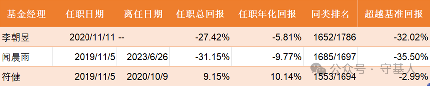 方正富邦信泓混合成立至今更换三任基金经理,三位基金经理均排名倒数,其中闻晨雨任期亏损高达31.15%,现任基金经理李朝昱任期亏损27.42%。