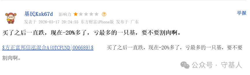 2026年初的基金业绩榜单上,方正富邦信泓混合C(008182)以一种极为刺眼的方式吸引了市场的目光,今年以来收益率-21.04%,在2347只灵活配置型基金中排名倒数第一。