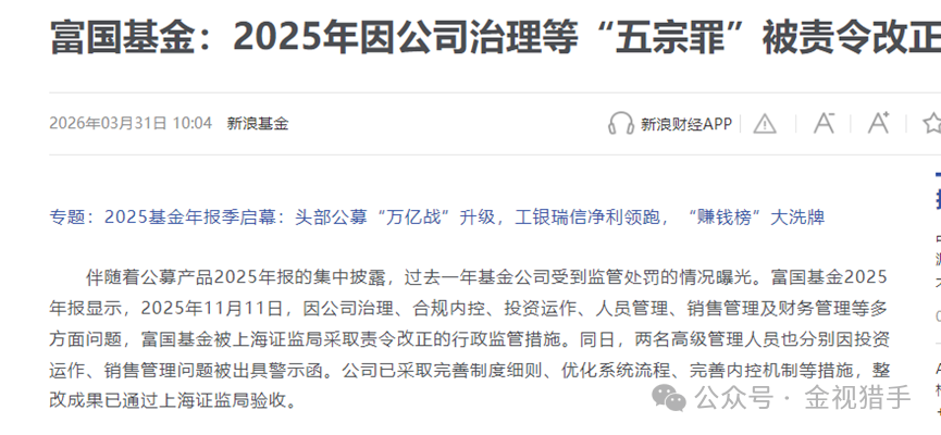 2026年公募基金年报披露进入尾声,老牌头部机构富国基金涉五宗罪被罚引发关注。