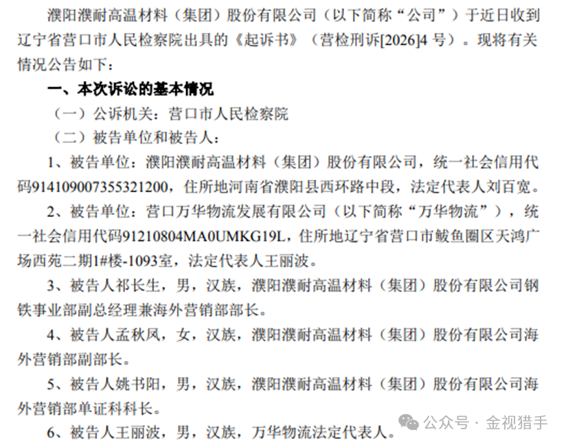4月25日,耐火材料龙头濮耐股份(002225.SZ)一则公告,将一桩持续近两年的走私案公之于众。公司及4名高管被辽宁省营口市人民检察院以涉嫌走私国家禁止进出口的货物、物品罪提起公诉,涉案金额近600万元。