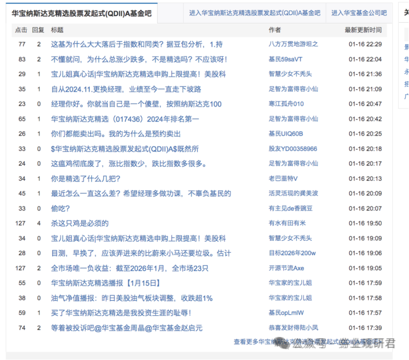 据券业观研君报道,今年1月,社交平台上“华宝基金一生黑”的吐槽刷屏,核心导火索是华宝纳斯达克精选基金的持仓与业绩争议。