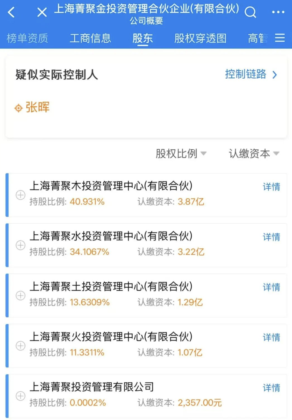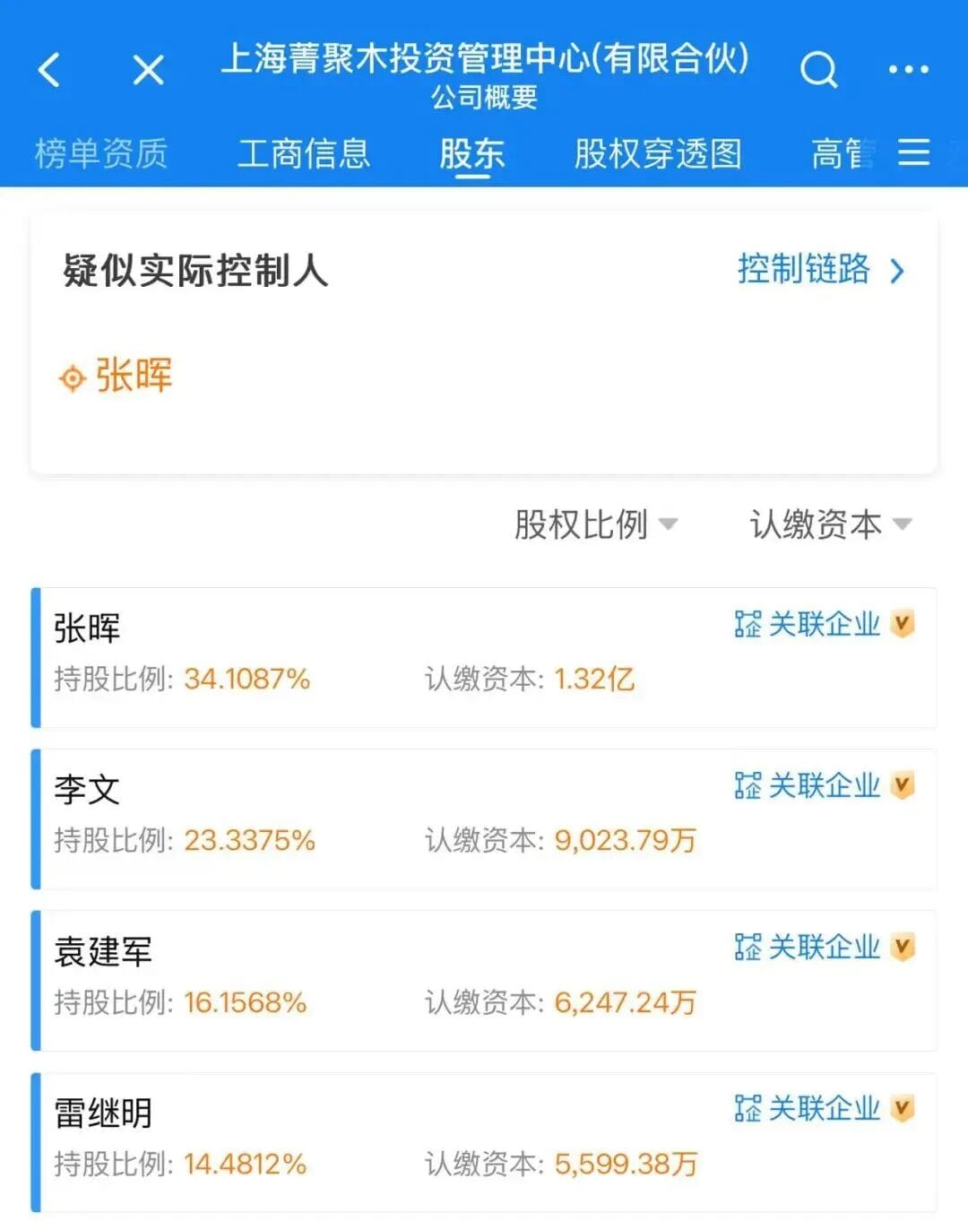 其中,汇添富通过上海菁聚金等平台持有约24.66%股权,2016年至2024年累计分红约20.3亿元。在上海菁聚木投资管理中心中,张晖认缴出资约1.32亿元、李文约0.90亿元、袁建军约0.62亿元、雷继明约0.56亿元,四人合计出资约3.40亿元。