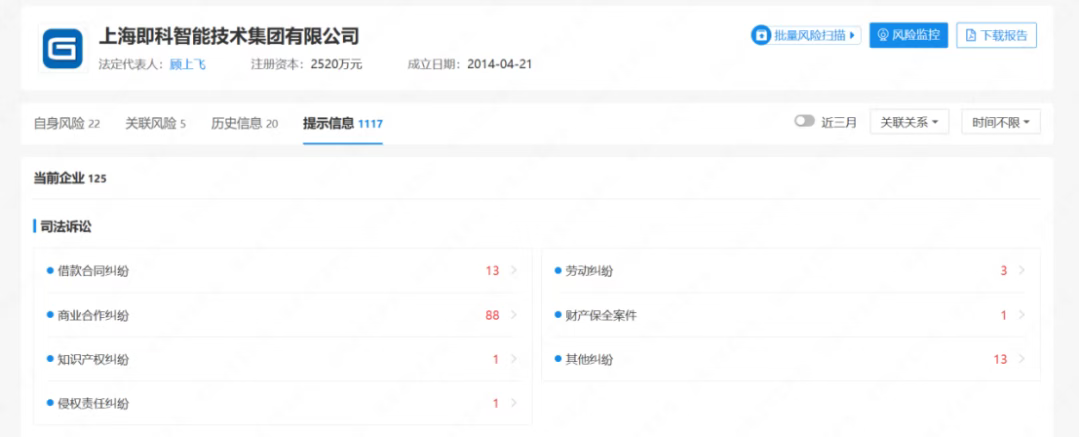 当前,该公司存在借款合同纠纷13条,商业合作纠纷88条。