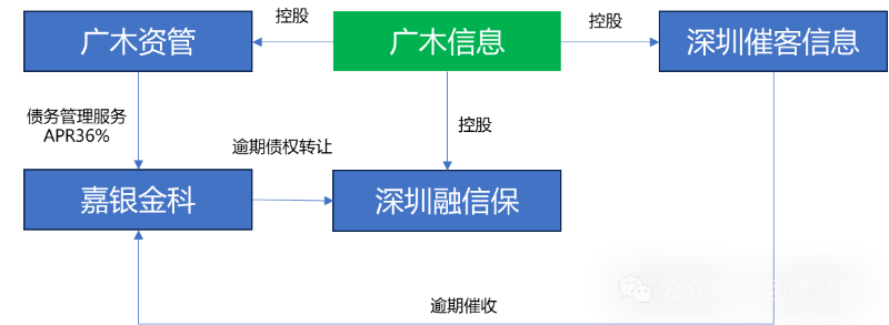 以嘉银APR36%放款链路为例,其通过广木信息旗下资管公司收取债务管理费,再由担保公司收取担保费并提供风险兜底,这两哥主体的损益均在上市公司体外。上市平台仅承担纯撮合角色。