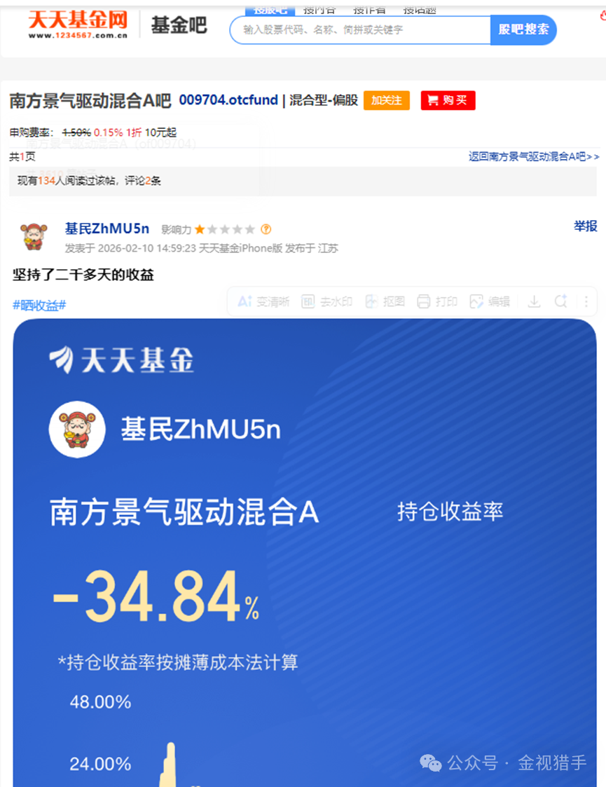 基金吧里,有基民近期则晒出坚持2000多天的收益,是-34.84%。