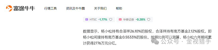 同时,这是总经理杨小松2024年9月刚刚连任第二届,却在任内遭遇监管罚单也值得反思。此外,富途牛牛信息显示,新浪财经曾报道,过去十年南方基金累计向股东分红65.99亿元,总经理杨小松六年间接分红高达2776万元。与此同时,南方基金目前仍有多只主动权益产品成立以来亏损超过30%,造成的基民亏损又该谁来买单?