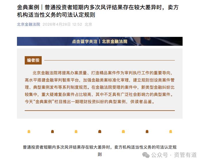 4 月 28 日,北京金融法院正式发布一则银行代销信托合规典型案例,聚焦银行代销金融产品适当性义务履行违规问题,引发行业关注。
