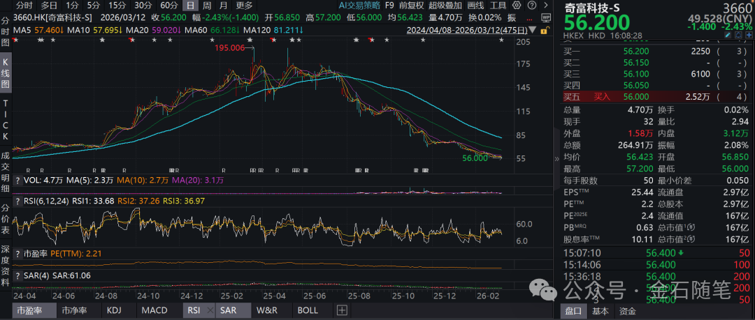 2025年4月3日助贷新规正式下发,10月1日实施,随之资本市场用脚投票,奇富科技从4月3日开始,股价已经暴跌66%,市值蒸发超300亿港元,最新市值167亿港元。