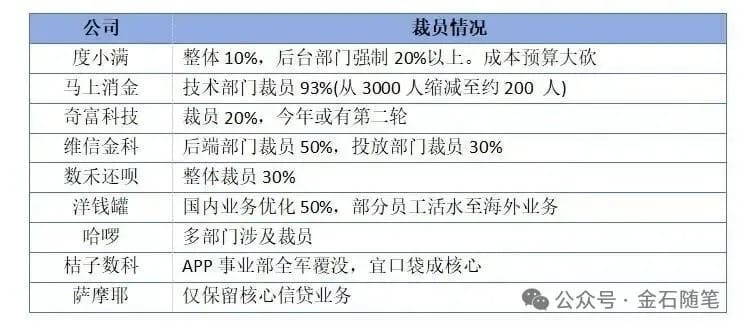 一方面,助贷新规落地后,综合利率上限被限制在24%以内,直击行业内部分平台高息运营模式的痛点,大幅压缩了助贷平台企业的利润空间。短短数月间,相关企业开启裁员浪潮(图片来自网络),其中奇富科技已经裁员20%,还新的裁员也在路上。