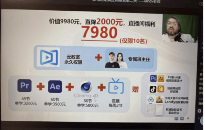 正式开始上课后,这位兰迪老师讲课节奏拖沓,中间开始强调技术变现等内容;到了后面两节课,兰迪老师连讲三个小时不停,然而都是车轱辘话强调买课的优惠,而且始终强调收益、承诺学会就可以接单等。