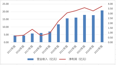 规模增长也带来丰厚的管理费收入。2015年末至2025年末,万家基金管理费收入分别为1.7亿元、1.67亿元、3.33亿元、4.01亿元、4.76亿元、8.95亿元、12.95亿元、15.23亿元、17.29亿元、16.58亿元、18.21亿元。