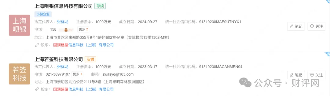 国润建融作为实际操盘手,通过复杂的股权关系与持牌机构小薇再贷产生关联。小薇再贷全资控股“蔷薇智慧科技有限公司”,而蔷薇智慧又分别持有上海呗银信息科技有限公司、上海若签科技有限公司各10%股权(经查询若签科技已显示注销)。这两家公司的控股股东正是国润建融,持股比例达70%。