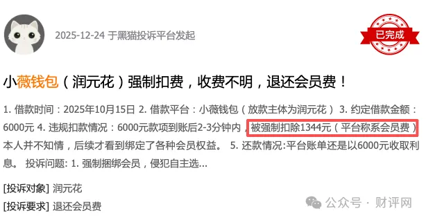 有用户反映,在薇钱包关联平台借款6000元,被强制扣除1344元会员费;借款5000元实际到账仅2200元。这种变相的“砍头息”直接导致实际借款成本大幅攀升。