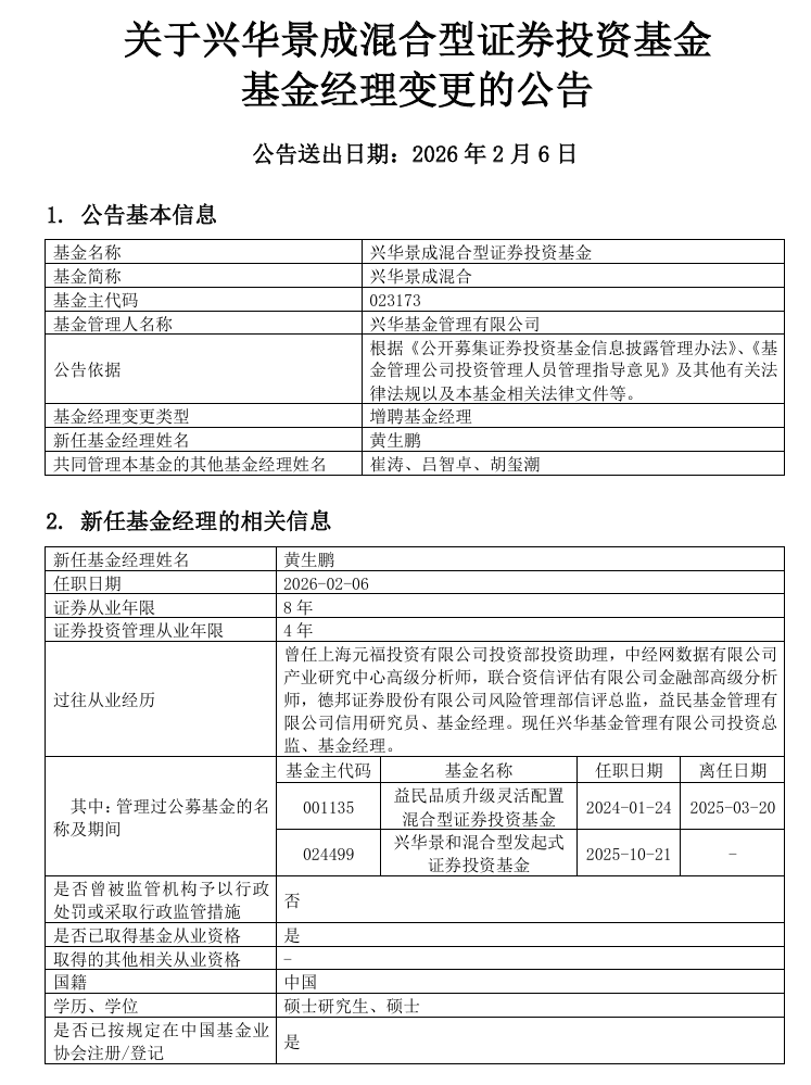 记者注意到,兴华景成混合成立于去年7月9日,基金经理变更十分频繁——其首发基金经理为崔涛;成立次日吕智卓被增聘为基金经理;去年9月22日,胡玺潮被增聘为基金经理。4位基金经理从业背景存在差异,部分存在“固收+权益”产品混搭的情况。