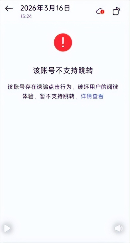 不过,记者再分别点击上述涉及的三款保险产品,均显示“该账号不支持跳转”“该账号存在诱骗点击行为,破坏用户的阅读体验、暂不支持跳转”。