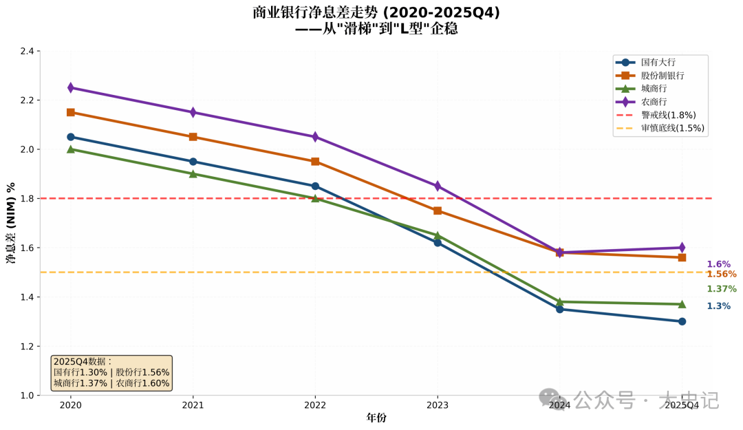 这不是简单的数字游戏。国家金融监管总局最新数据显示,2025年四季度末,商业银行净息差(NIM)维持在1.42%的历史最低位,已连续三个季度持平。