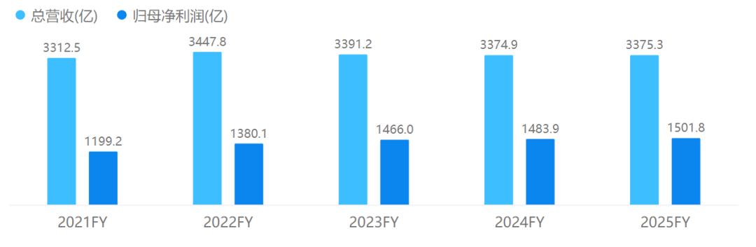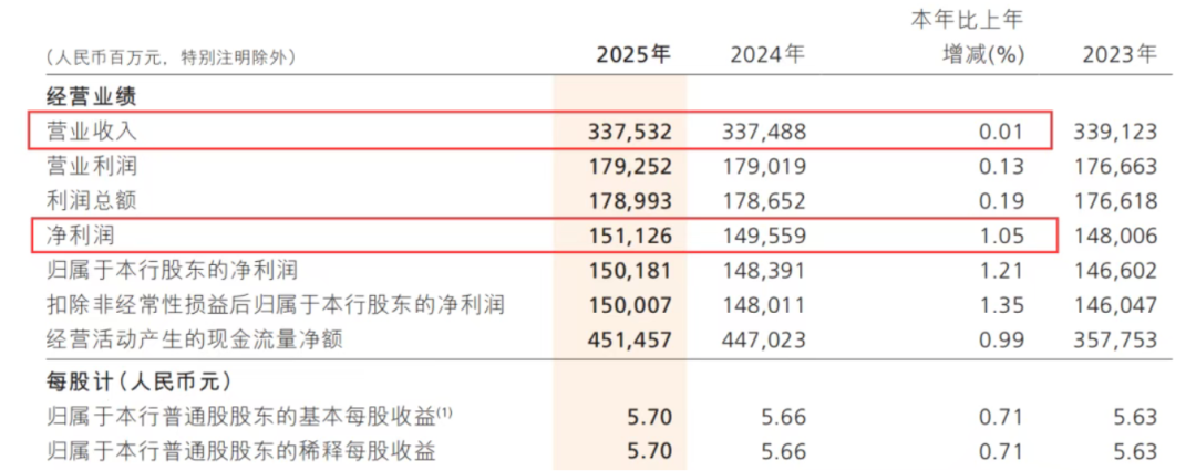 2025年年报数据显示,招行全年实现营业收入3375.32亿元,同比微增0.01%,实现净利润1501.81亿元,同比增长1.21%。