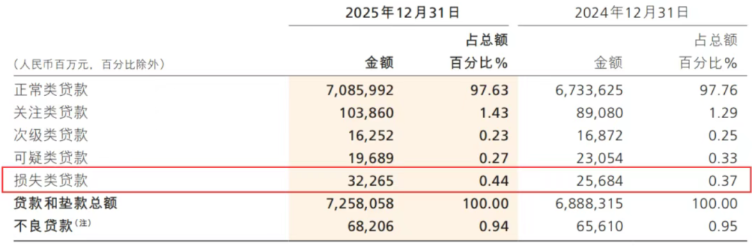 资产质量方面,截至2025年末,招商银行的不良贷款余额为682.06亿元,较2024年末的656.10亿元增加25.96亿元,增幅为3.96%;不良贷款率为0.94%,较2024年末的0.95%下降0.01个百分点。