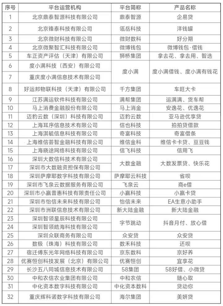 3月30日,中关村银行披露的平台运营机构名单显示,该行共与32家机构开展互联网贷款合作,具体合作方包括:满帮集团(运满满、货车帮)、马上消费(安逸花、优逸花)、大数金融(大数发票贷、快乐花)、58集团(58好借、小微贷)、海尔集团(美妍贷)等。