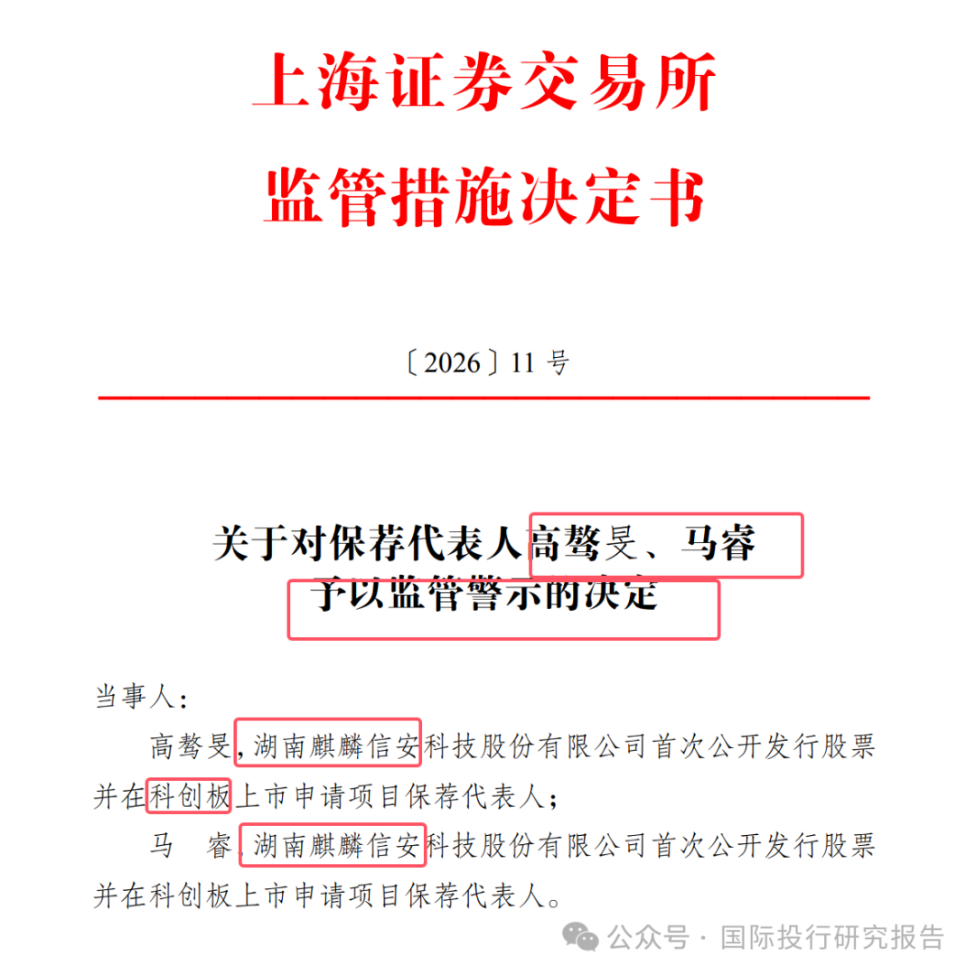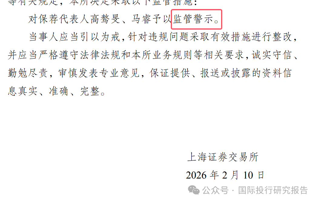6 、目前上交所给这些眼睛有病的中介机构的处罚是“监管警示”。根据证监会此前的规定,中国证监会对IPO发行过程中的责任追究机制已全面强化,确立了“穿透式监管、全链条问责”原则。中介机构(保荐人、会计师、律师等)不再只是“看门人”,而是与发行人承担连带责任的“共同责任人”。但现在这样的处罚是不是让这些中介机构很赚啊!