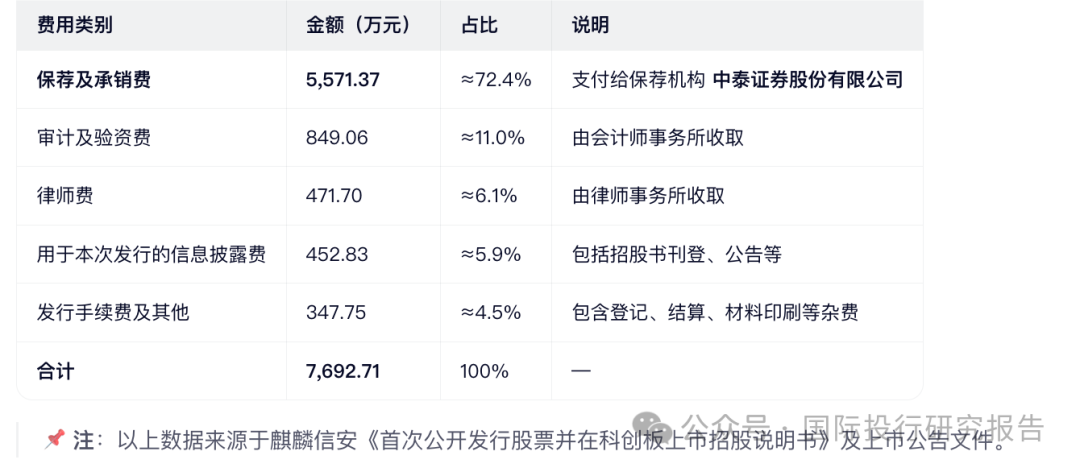 - 麒麟信安IPO中介机构获利丰厚,其中中泰证券赚了 5571.37 万,律师获得了 471.70 万,会所拿了 849.06 万。